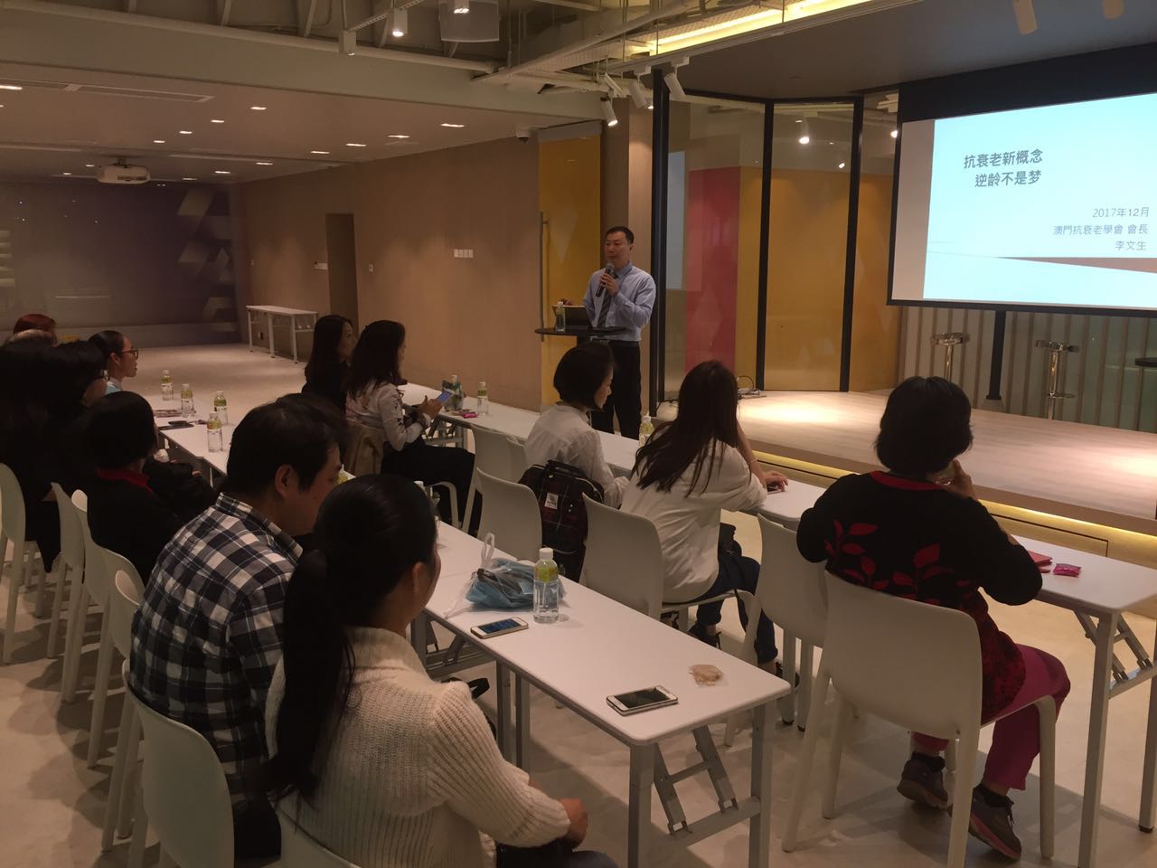 12月2日,立方米綜合活動中心邀請到澳門抗衰老學會會長:李文生顧問醫生,為大家帶來了主題為:逆齡不是夢——生物科技改變生命的講座。詳細的講解了如何抗衰老的方法。